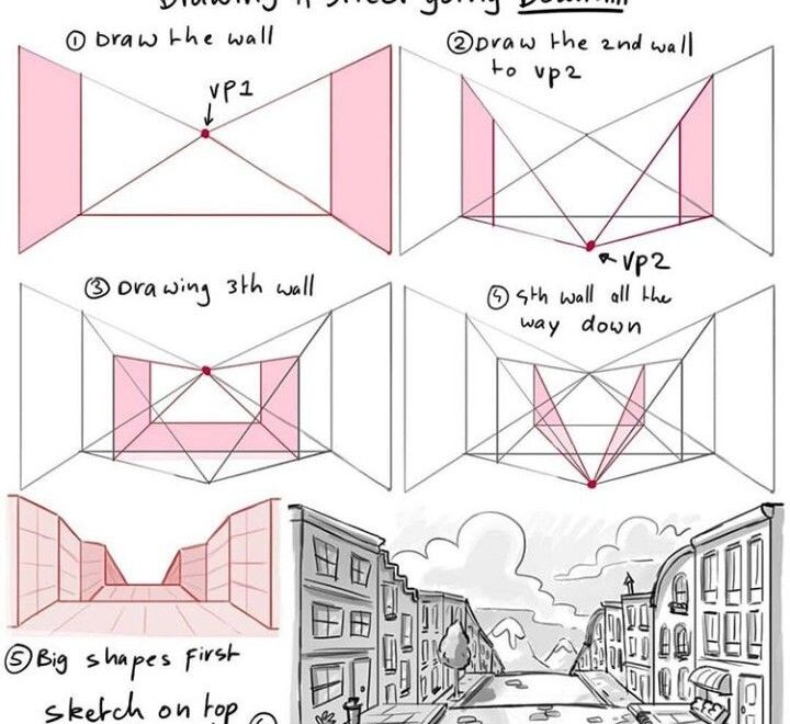 How to Draw a Convincing Downhill City Street in Two-Point Perspective – Step-by-Step Tutorial How to Draw a Convincing Downhill